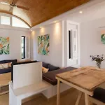 Family-run apartment with ultra modern facilities not too far from an energetic beach. The indoor restaurant was good. Luxury, bright bathroom.